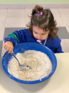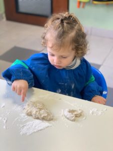 Las salas maternales exploraron y descubrieron nuevos materiales a través de los sentidos. Haciendo engrudo, el tacto y el olfato fueron los principales protagonistas para intervenir la masa.