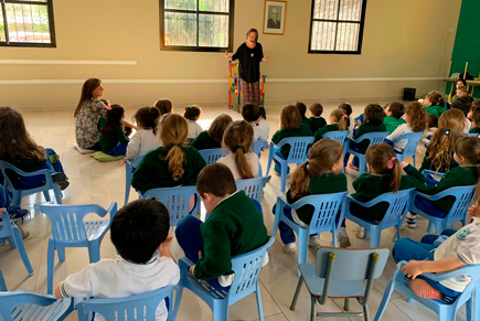 El pasado lunes 16 de septiembre festejamos el día del maestro en Nivel Inicial. Nos visitó Paula Lertora, una narradora de cuentos que, a través de las narraciones, dejó profundas moralejas para las docentes y entretenidos relatos para los chicos.