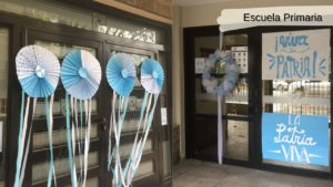 Las puertas de la Escuela fueron decoradas para festejar el acto patrio